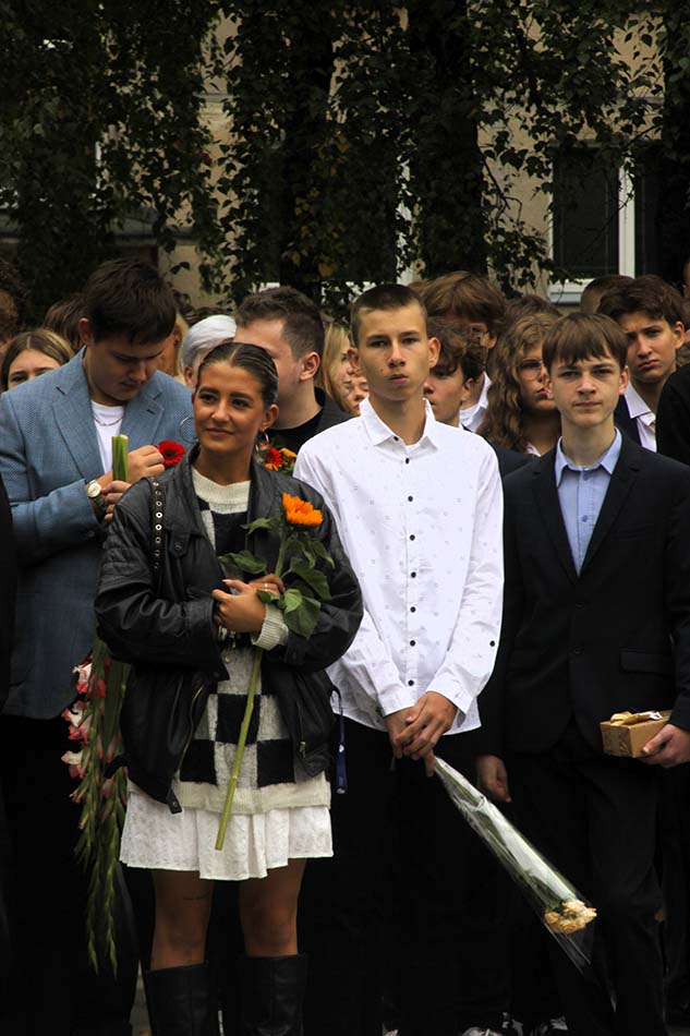 Naujuosius mokslo metus gimnazijoje pradėjome šventiškai. Sveikinimo žodį tarė gimnazijos direktorius Sigitas Andraikėnas, palinkėjo mokiniams drąsiai siekti žinių, augti ir tobulėti, mokytojams – kantrybės, kūrybiškumo ir įkvėpimo kasdieniam darbui, tėveliams – džiaugtis vaikų pasiekimais, būti jų stipria atrama ir bendrakeleiviais. Toliau renginį vedė direktoriaus pavaduotoja A. Budienė.